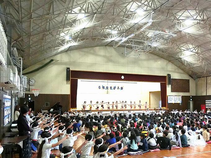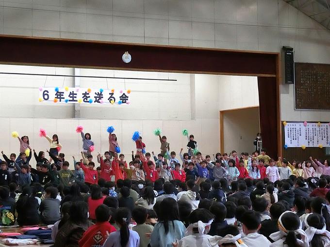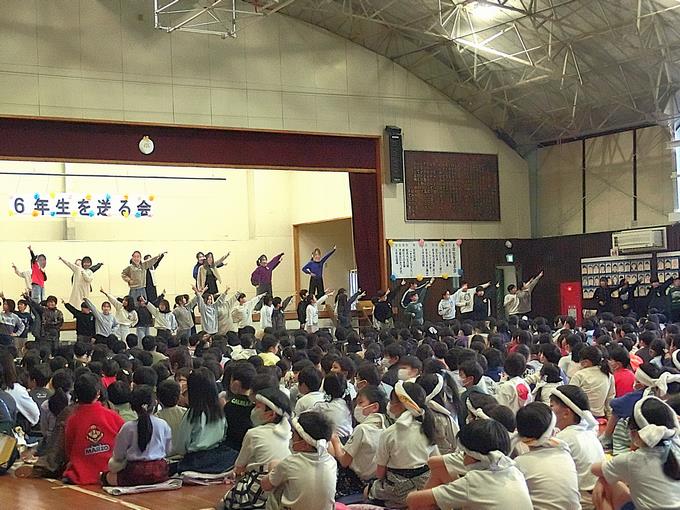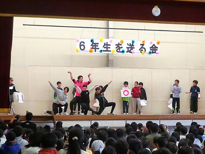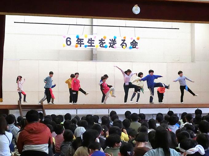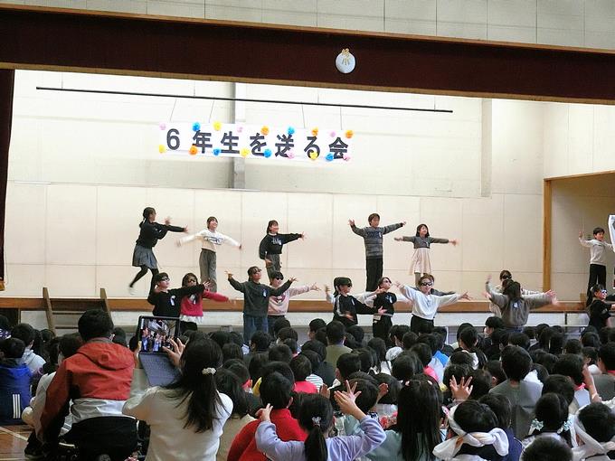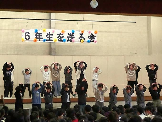 全校が集まって「6年生を送る会」を実施しました。全学年の心のこもった出し物の数々、歌や演奏、ダンス、劇、リアル対戦、メッセージ、エールなど、みんなで感謝の気持ちを込めながら、6年生と楽しい時間を過ごしました。
