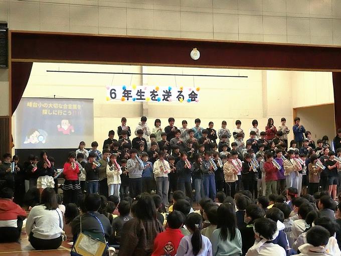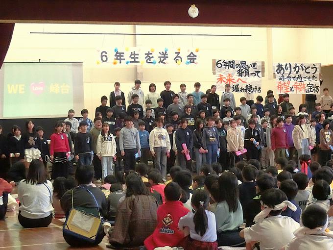 1年生から5年生の峰っ子たちが、6年生に伝えたかった感謝の気持ち、そして、6年生が峰っ子たちみんなに伝えたかった感謝の気持ち、どちらもしっかりと伝わったと思います。心と心の間にあるものは「思い」です。その思いは、声や文字、音、表情などで発信し、相手が受け取ります。思いが伝わる時間はとても素敵です。峰台小学校の「6年生を送る会」は、思いが溢れる独特な時間なのです。