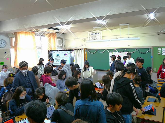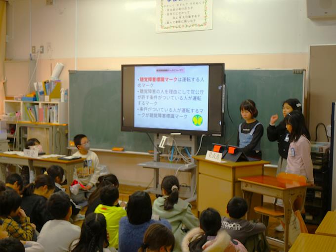 4年生は、総合的な学習の時間の取り組み「普段のくらしをしあわせに」で、今までに調べてきたことをタブレット上でまとめ、発表する場面でした。