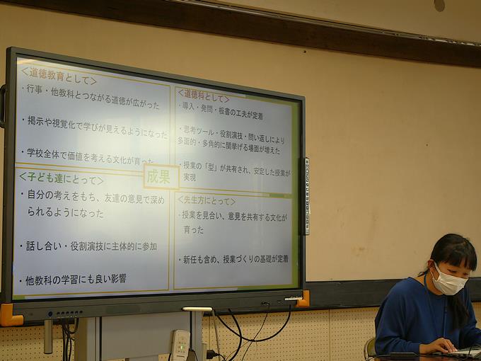 各学年の取り組み内容の報告、成果と課題、データから見る児童の変容等をわかりやすくまとめて発表していました。歩みを止めない校内研究により、着実に成果を積み重ねていると同時に新たな課題を見出すことができました。