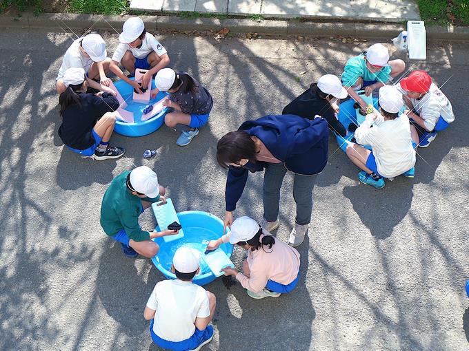 今日の峰台は、とても穏やかな陽気。風もなく、絶好の洗濯日和。3年生が、外で洗濯をしていました。昔ながらの洗濯スタイルで、洗濯板を使いゴシゴシ楽しそうに活動している3年生の峰っ子たち。