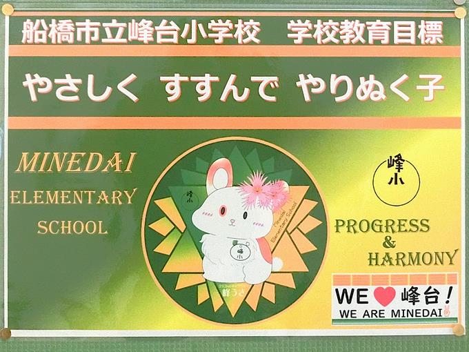 今年度の峰台小の合言葉は、「WE💜峰台! WE ARE MINEDAI ✌」です。いろいろな場面で、峰っ子みんなで元気に声を合わせたいと思います。