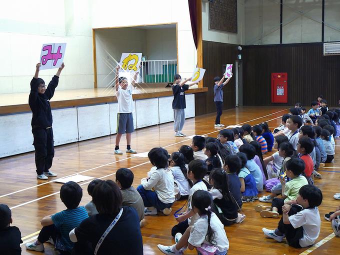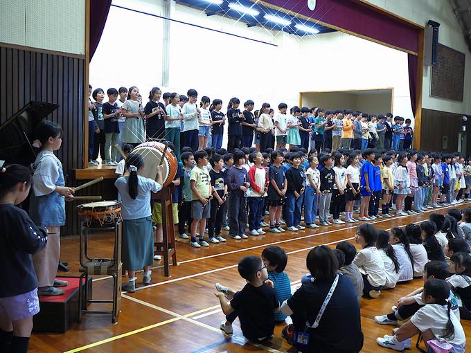 ダンスの発表あり、音楽の発表あり、峰台クイズの時間があり、1年生と一緒に全校みんなで楽しみました。どんなことでも全力で取り組む峰っ子たちは、いつも思いますが素晴らしいです。