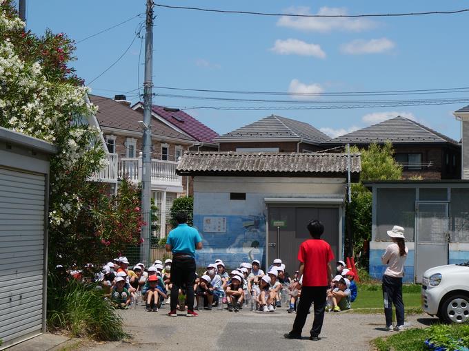 今日の峰台は、朝から気温上昇、風もほぼ無風、午前10時30分には30℃を超える暑い日となりましたが、1年生が元気に学区探検をしてきました。目的地は宮本台公園。学校からは700メートルぐらいのところにあります。
