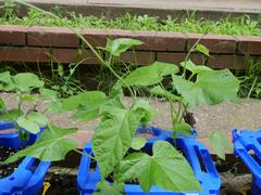 低学年の峰っ子たちが育てているアサガオや野菜が元気に生長しています。
