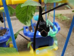 2年生の栽培エリアでは、ミニトマト・ピーマン・ナスの実が見られるようになってきました。キュウリはまだ花の姿がありませんが、ぐんぐん伸びています。