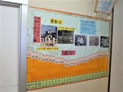 職員室前にある「峰台小学校のあゆみ」コーナーをリニューアルしました。剝がれている部分を修復し、枠の色を変更し、写真や資料を追加し、透明シートカバーを新しいものに交換しました。