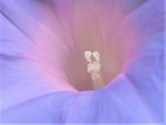 1年生が大事に育てているアサガオ。今日、今年一番最初の花が開花しました。淡い感じの青紫系の色をしています。中の様子もしっかり見えます。