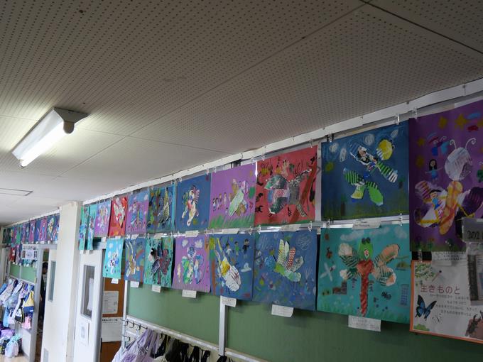 校内夢・アート展のに向けて各学年の廊下に作品が掲示され始めました。