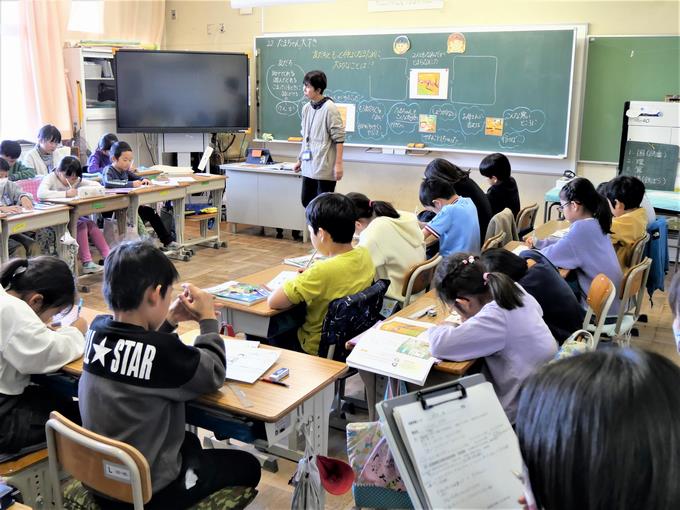 授業を展開してくれたのは3年生。「友だち」について話し合います。友だちともっと仲よくなるために大切なことは?自分たちにとっても身近なテーマなので関心はかなり高め。