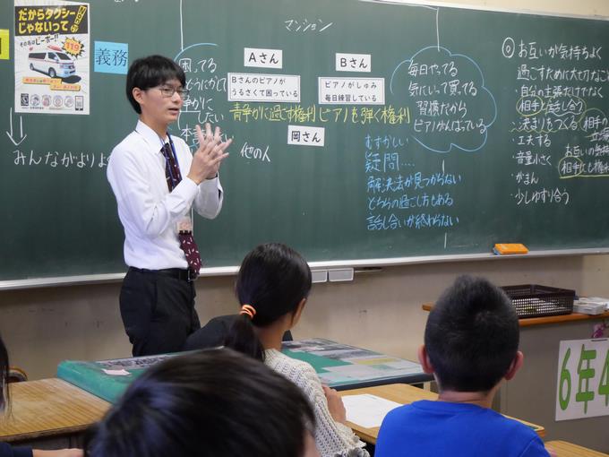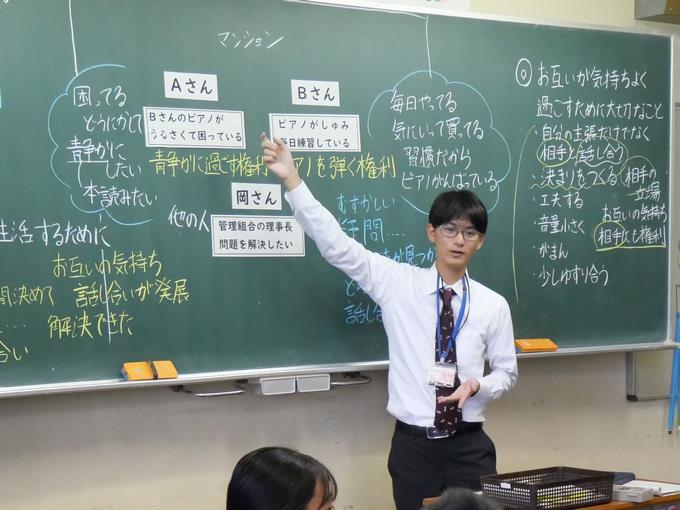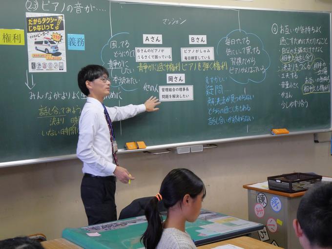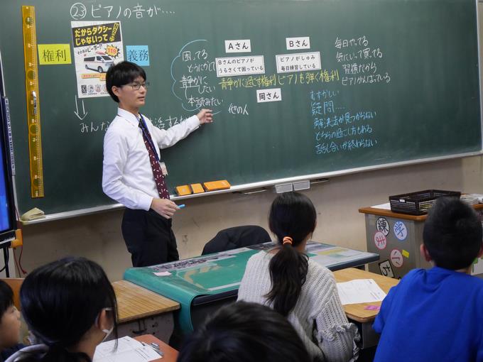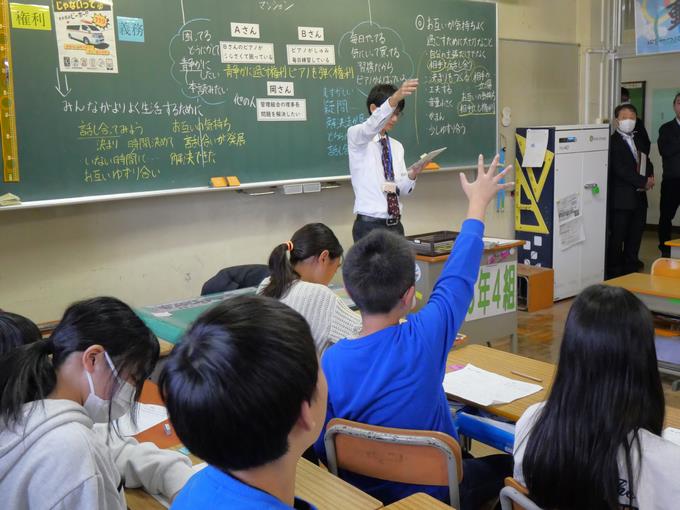 この授業では、権利と義務について考え、自他の権利を大切にするとともに、自らの義務を果たそうとする態度を育てることをねらいとしていました。