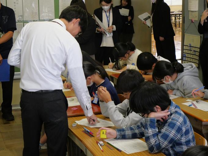 先生自ら手本を実演します。子供たちは熱心に見ていました。