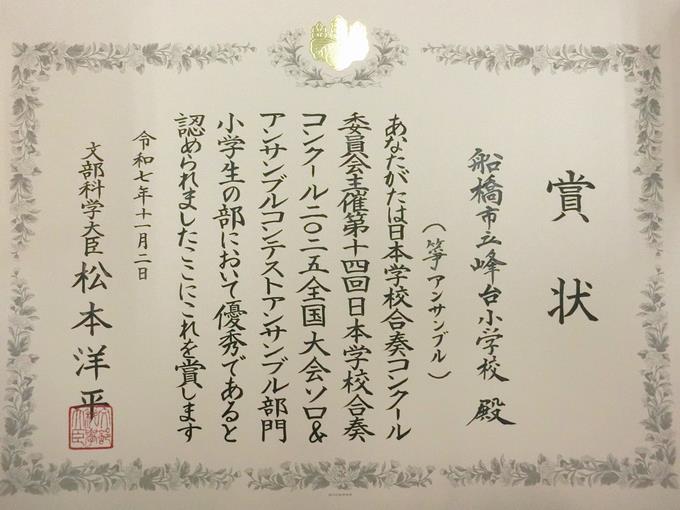 【Vol.147】11月2日の峰台 音楽部が全国第1位「文部科学大臣賞」