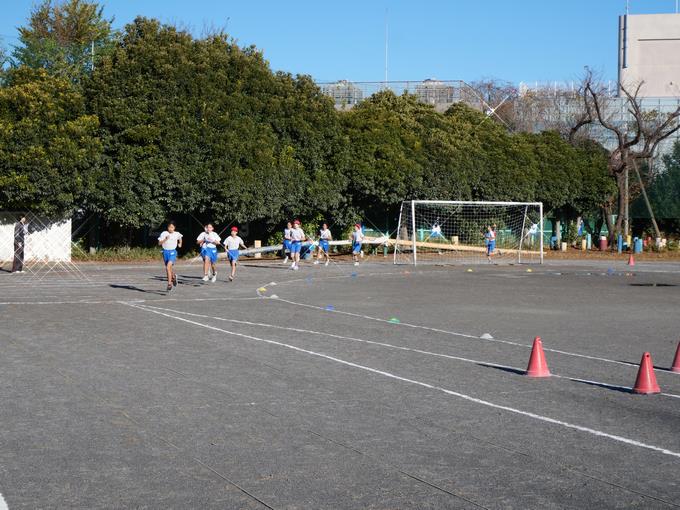今年度は、給食調理棟連絡通路の可動ゲートを通り鉄棒広場前を通過する新ルートでの実施。ゲートから全力で進んでくる峰っ子たちの姿がとても素敵でした。