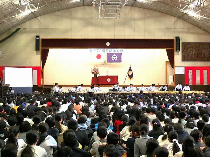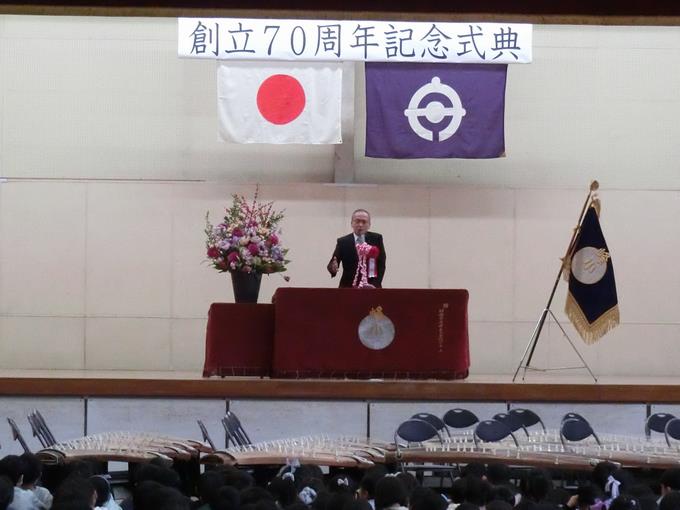 船橋市長様、船橋市教育委員会教育長様をはじめ多くのご来賓の皆様のご臨席を賜り、午前10時より峰台小学校創立70周年記念式典を挙行しました。オープニングは音楽部による箏の演奏「祭花二番」。