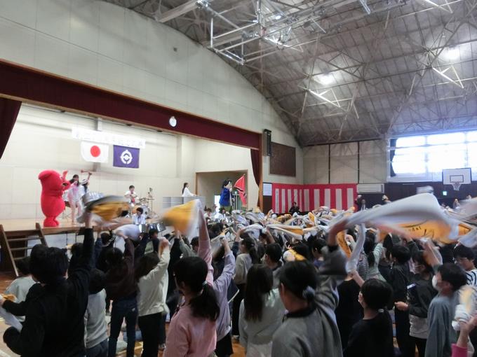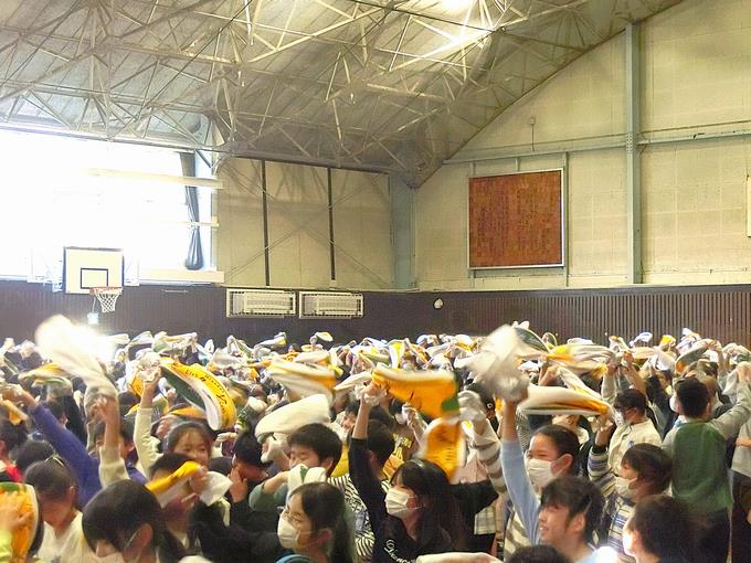 準備していた峰台オリジナルのマフラータオルを峰っ子みんなで音楽に合わせて振ったり回したりして楽しみました。