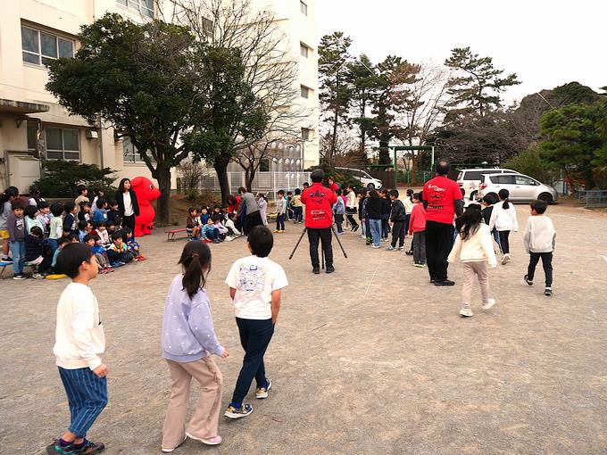 業間休みに校庭で峰っ子チャレンジに挑戦していました。