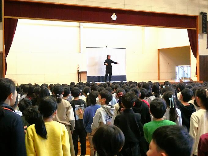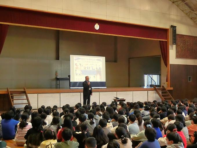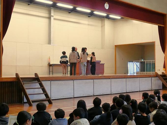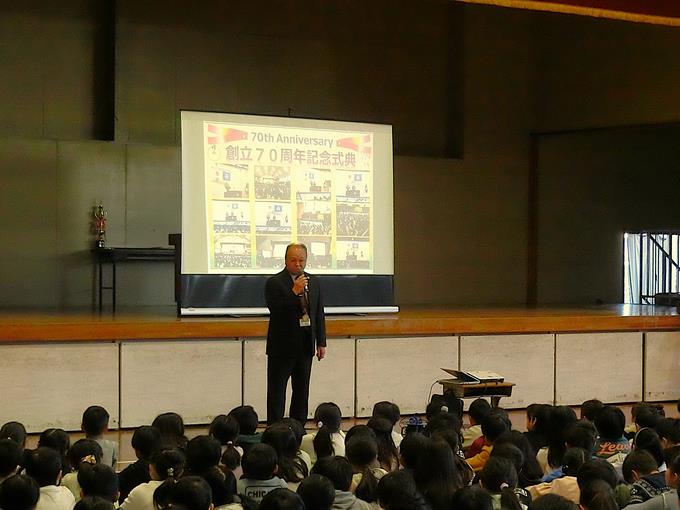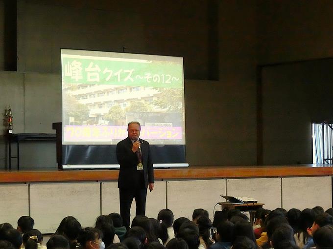 校長先生の話では、創立70周年の1年間のふりかえり、2026年の1月イベント「峰台 SUPER・STAGE 2026」のお知らせ、冬休みにやってほしいことの話がありました。