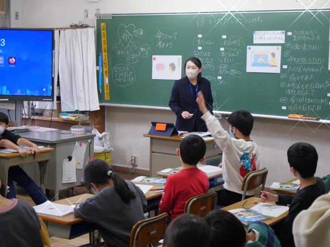 3年生のクラスで道徳の授業を展開していました。教材は東京書籍「34 大通りのサクラなみ木」を扱っていました。まずは、「日頃、お世話になっている人は、どんな人でどう見守ってくれているのか」を話し合います。