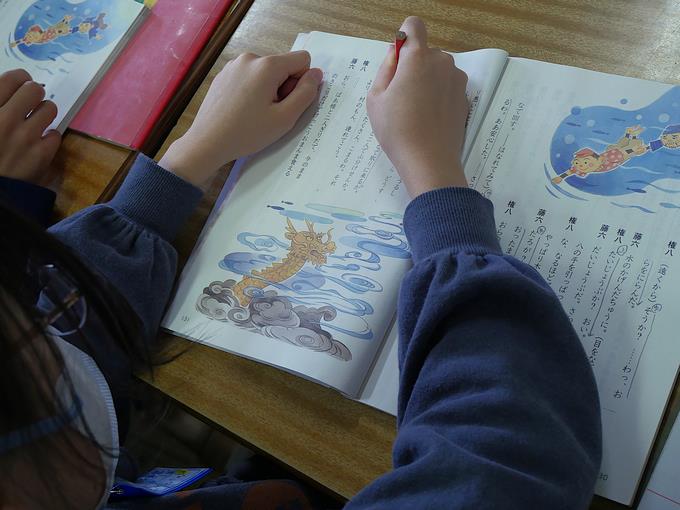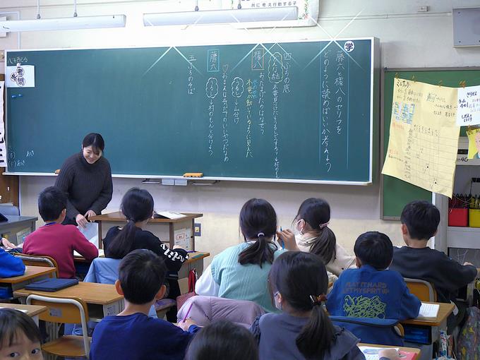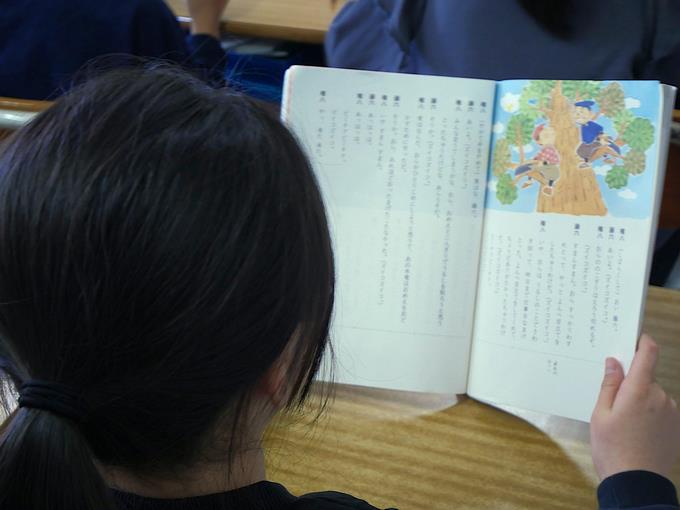 4年生が国語の授業で「木竜うるし」を展開していました。「木竜うるし」は、登場人物の性格が対照的で、セリフも多く、地の文やト書きもあります。そのため、役割を意識して読むことが重要となります。藤六は、気立てがよく、お人好しな性格なので、ゆっくりと、丁寧に、優しさが伝わるようなトーンで読みます。権八は、欲が深く、少しずるがしこいところがありますが、どこか憎めない性格です。調子よく、少し早口にしたり、期待感や焦りを感じるように読むと効果的です。4年生の峰っ子たちは、どう読めばいいのか、自分なりに、じっくりと考えていました。