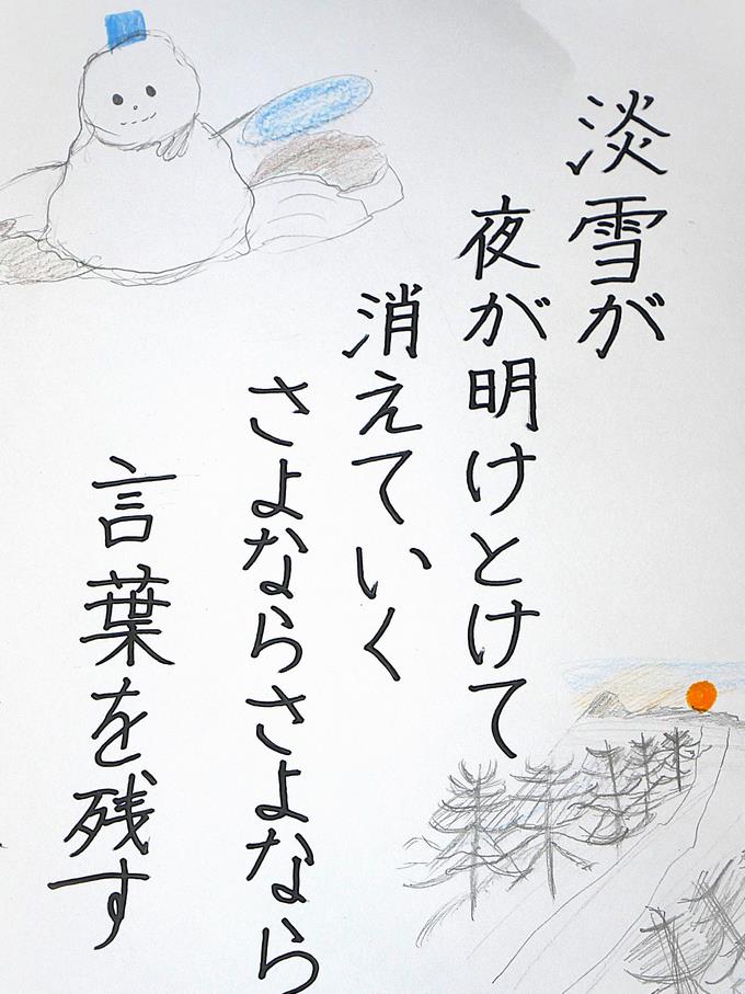 4年生の国語で「冬」をテーマに短歌を書くときは、五・七・五・七・七の31音のリズムを活かし、冬ならではの情景や行事を言葉にすることがポイントです。俳句と違い、短歌には季語を入れる必須のルールはありませんが、冬の雰囲気を出すために入れることが多いです。また、イラストも添えると、情景や気持ちがよりわかりやすく伝わります。