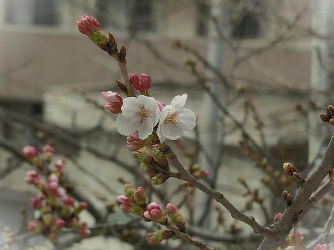 先週末の暖かさで、峰台のサクラ(ソメイヨシノ)が開花しました。枝には、膨らんだつぼみがたくさん見られますので、今週末に向けてどんどん開花していきそうです。峰台小学校には、正門周辺、昇降口前、わんぱく山周辺、そして、校庭などにサクラ(ソメイヨシノ)があります。