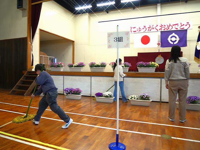 明日の入学式に向けて6年生の峰っ子たちと教職員で、清掃や会場設営など、さまざまな準備を分担して行いました。新入生のために昇降口や廊下、教室、そして、式場となる体育館を一生懸命にきれいにしている6年生の峰っ子たち、自分自身で考えて進んで行動している姿は「峰台らしさ」全開でした。