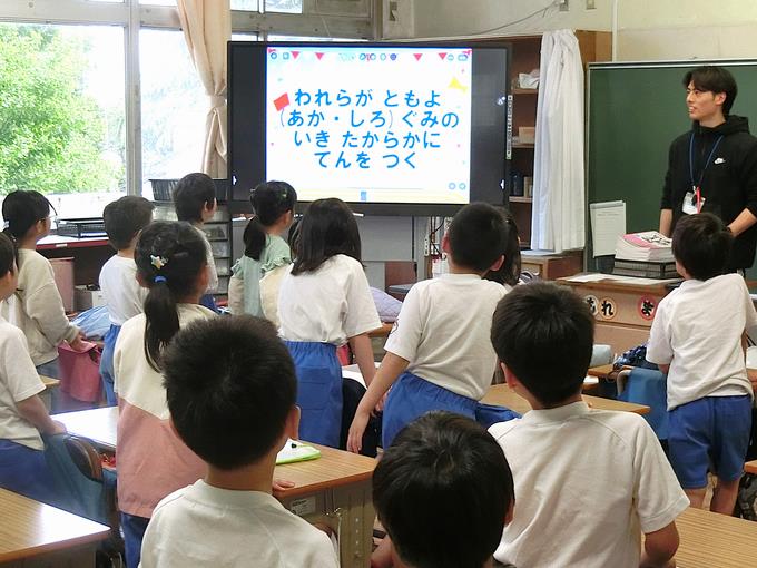 今年度の峰台小の合言葉は、「WE💜峰台! WE ARE MINEDAI ✌」です。いろいろな場面で、峰っ子みんなで元気に声を合わせたいと思います。