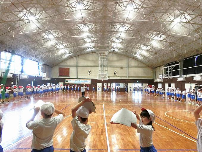 授業中は、校庭と体育館を使い各学年種目の練習を熱心にしています。表現リズム系種目は、全体的な流れと振り付けを覚えたようです。あとは本番までに完成度を高めていきます。