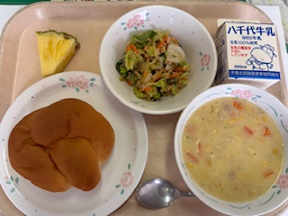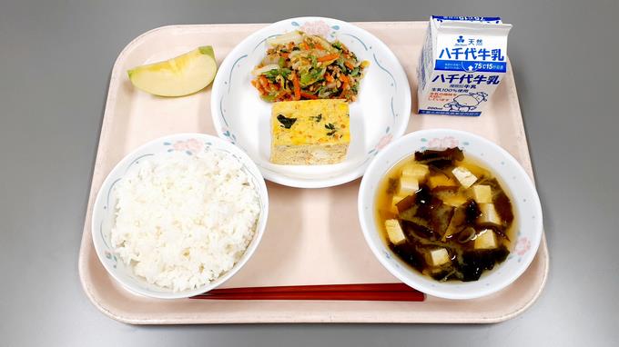 はなちゃんのみそ汁(豆腐とわかめのみそ汁) りんご 牛乳