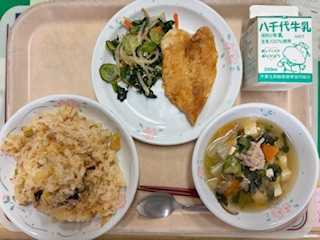 ゆかりご飯 鱈のみそマヨネーズ焼き けんちん汁