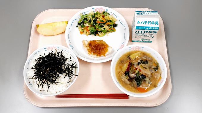 おかか和え 大根のみそ汁 りんご 牛乳