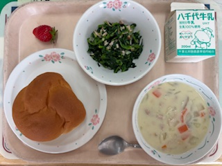 ほうれん草のサラダ いちご 牛乳