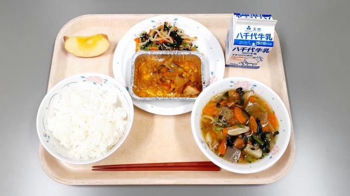 ごま和え のっぺい汁 りんご 牛乳