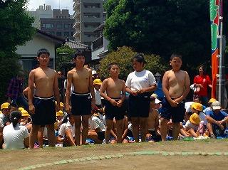 6月20日(土曜日)に、船橋市の春季市民相撲大会が行われました。三山小からは3,4,5,6年生の男女15名が参加しました。団体戦は一回戦で優勝チームに2勝3敗と惜しくも敗れる結果となりました。個人戦では、5-6年生女子の部で優勝、6年生男子の部で準優勝、3位が2名と練習の成果を発揮してすばらしい結果を残しました。