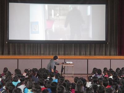 今年度は、不審者役の警察官(船橋東警察)が、職員玄関から侵入し、事務室前階段を上がり、3階南校舎の教室に行き、児童に危害を加えようとするという想定で行われました。