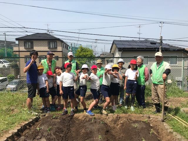 ボランティアさんと青葉学級で野菜の苗を植えました。