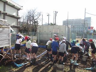 12月14日(水曜日)に5年生が田んぼに土入れをしました。先日、5年生が田んぼの土を外に出して、ボランティアの方々が水漏れを防ぐためにブルーシートを敷き直しました。一輪車やバケツを使って、みんなで協力して肥料を混ぜながら土を入れました。来年度の田植えの準備ができます。ボランティアの皆さん、ありがとうございました。