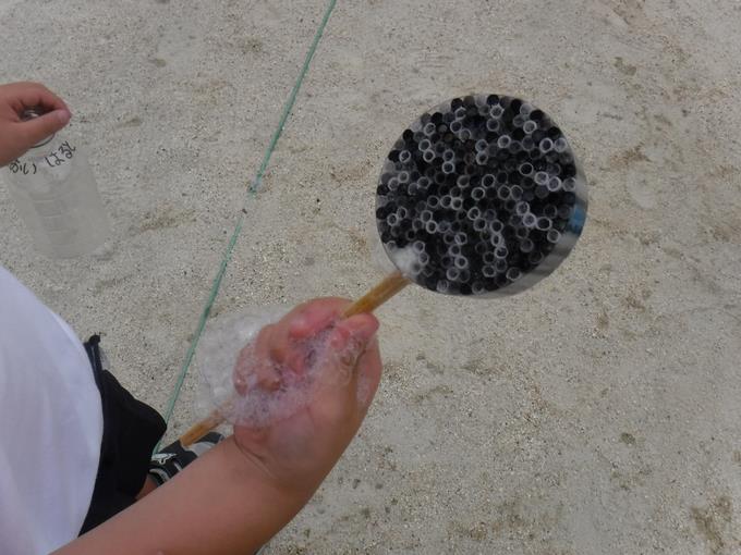 1年生が生活科の活動として、シャボン玉遊びに取り組みました。