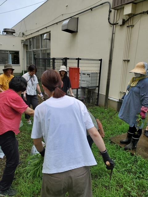 小雨の降る中、PTA本部と協力員の皆さんが美化作業をしてくださいました。雨の様子を見つつ、始めは昇降口のすのこや砂落としの下の砂やごみを取り除いていただきました。その後、雨はなかなかやまなかったのですが、せっかくだからと、エアコン室外機の柵内の除草作業をしてくださいました。短時間であっという間に雑草が取り除かれ、大変助かりました。雨で濡れながらの作業、本当にありがとうございました。