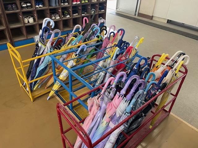 写真は、今日の昇降口の傘立ての状況です。素晴らしくきれいに整頓されていました。年度当初から、あるクラスが進んで傘の整頓をしていましたが、他クラスにも広がりを見せているようです。先日の保護者向けいのちの授業の中で、大人は子供を「ほめる」より「認める」ことが大切、というお話がありました。子供たちのできていることを見つけ、学校でも家庭でも認める言葉がけをしていきたいですね。