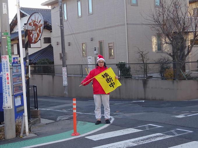 早いもので、令和7年最後の登校日となりました。今年も例年のように冬休みモードで見守りをするスクールガードさんがいました。