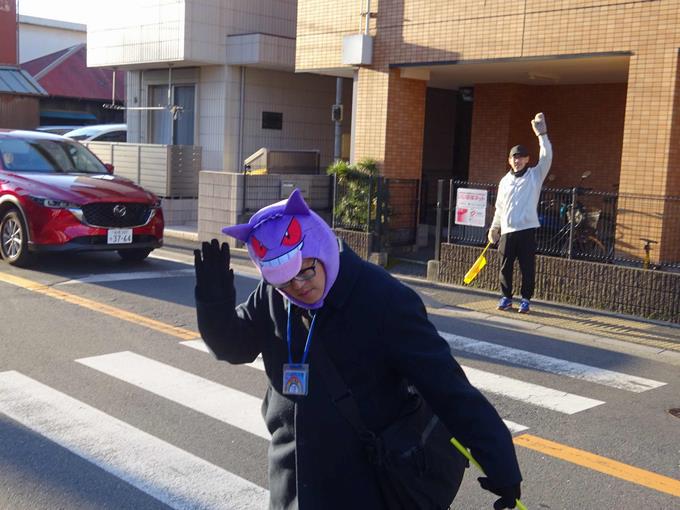 今日はミニオンやポケモンのカビゴンがスクールガードをしていました。特に1年生が嬉しそうに声をかけていました。本校のスクールガードはときどき仮装するので、楽しみにしていてください。