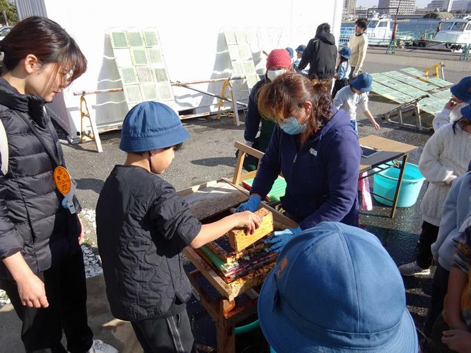 3年生が総合的な学習の時間の一環として、船橋漁港にある「三番瀬みなとや」さんに行き、海苔すき体験を行いました。