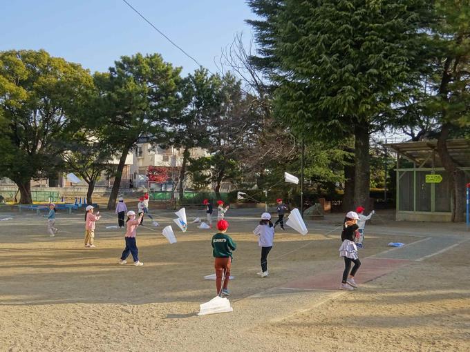 1年生が生活科の時間にたこあげをしました。 1人1つの凧を手に、校庭を全力疾走していました。「先生、高くあがったよ!」と報告する顔は、達成感でいっぱいでした。 日本の伝統的な遊びを通して、冬の自然に親しむ素敵な時間になりました。