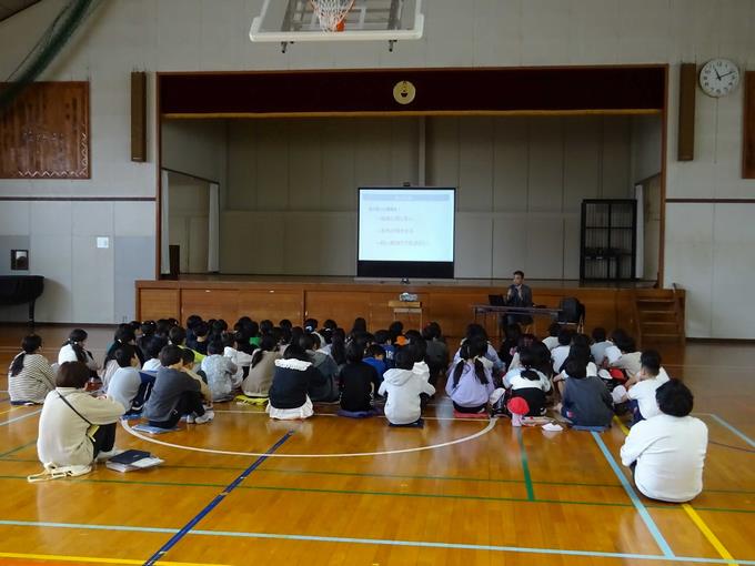 全校朝会では、校長先生からと生徒指導主任の先生からお話がありました。