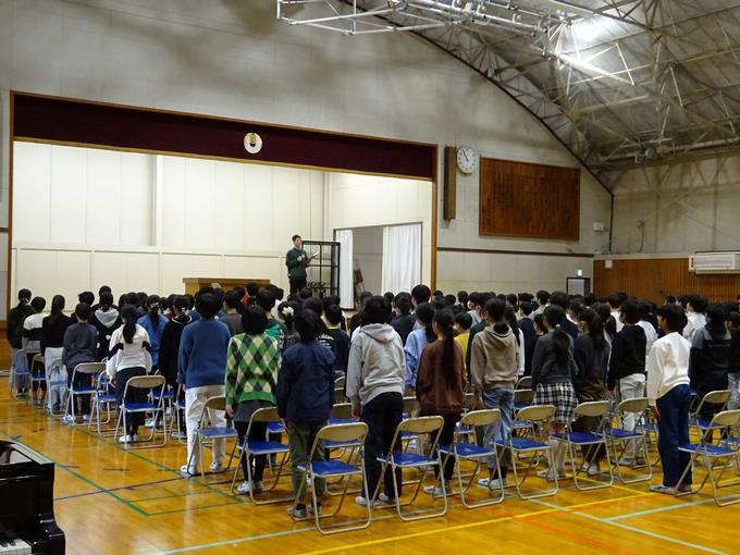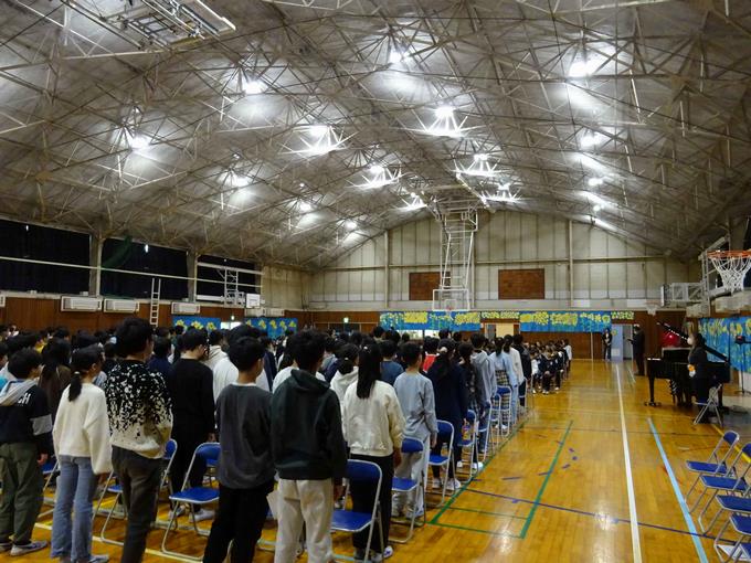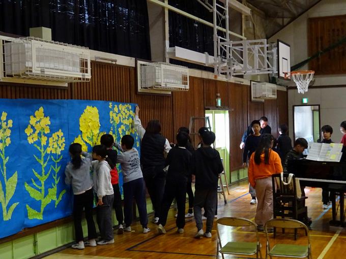 2月の最終日に卒業を祝う会が行われました。1~5年生は6年生のために、6年生はお世話になったすべての人のために、この日まで練習してきました。
