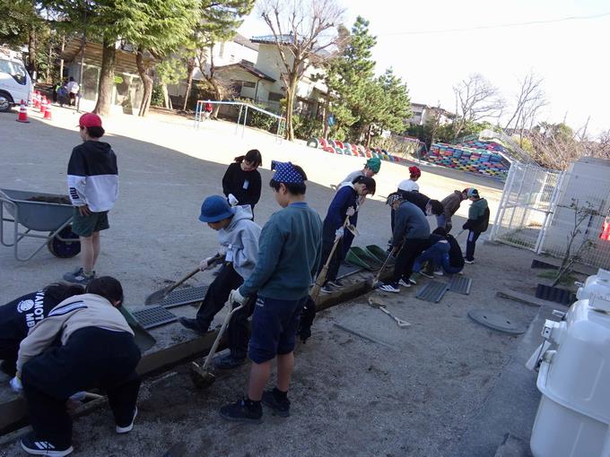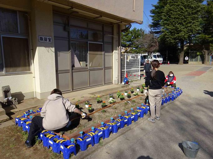 学校職員も暖かくなってきたので、花壇に花を植えています。春が近づいてきた感じがしますね。