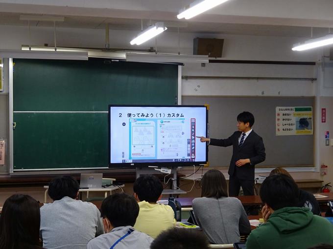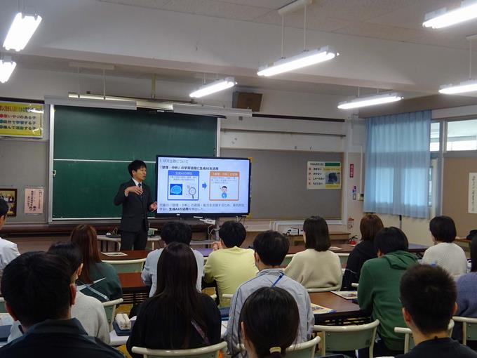 長期研修生となり1年間大学で学んだ先生を講師として、研修テーマである「情報活用能力の育成を目的とした生成AIの活用実践」についての発表をしてもらいました。併せてデジタル教科書の活用方法について実際に使いながら、デジタル教科書の便利さや課題について、教えてもらいました。生成AIもデジタル教科書もこれからの教育に大きな効果をもたらすツールです。今日学んだことを授業で活用できるようにしていきたいと思います。