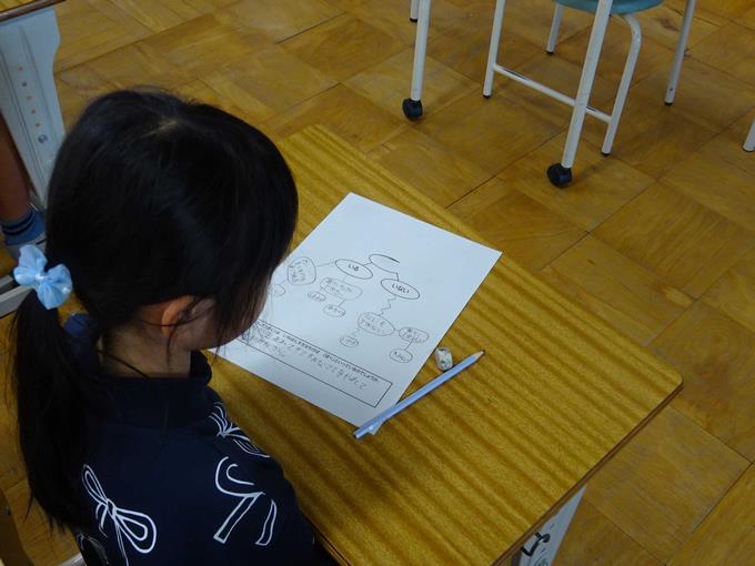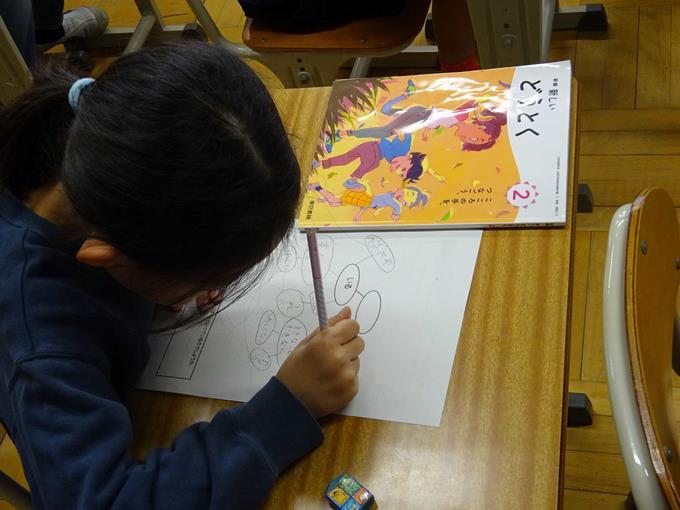 2年生の授業では、「ぼく」という単元で、自分の好きなことを発表したり、好きなことをしている時の気持ちを色で表したりしました。また、自分がいる・いないことで、どんなことができたりどんな気持ちになったりするかをウェビングマップを使って表しました。自分の気持ちをしっかり表すことができ、「自分を大切にしたい」という感想をもった子供がたくさんいました。